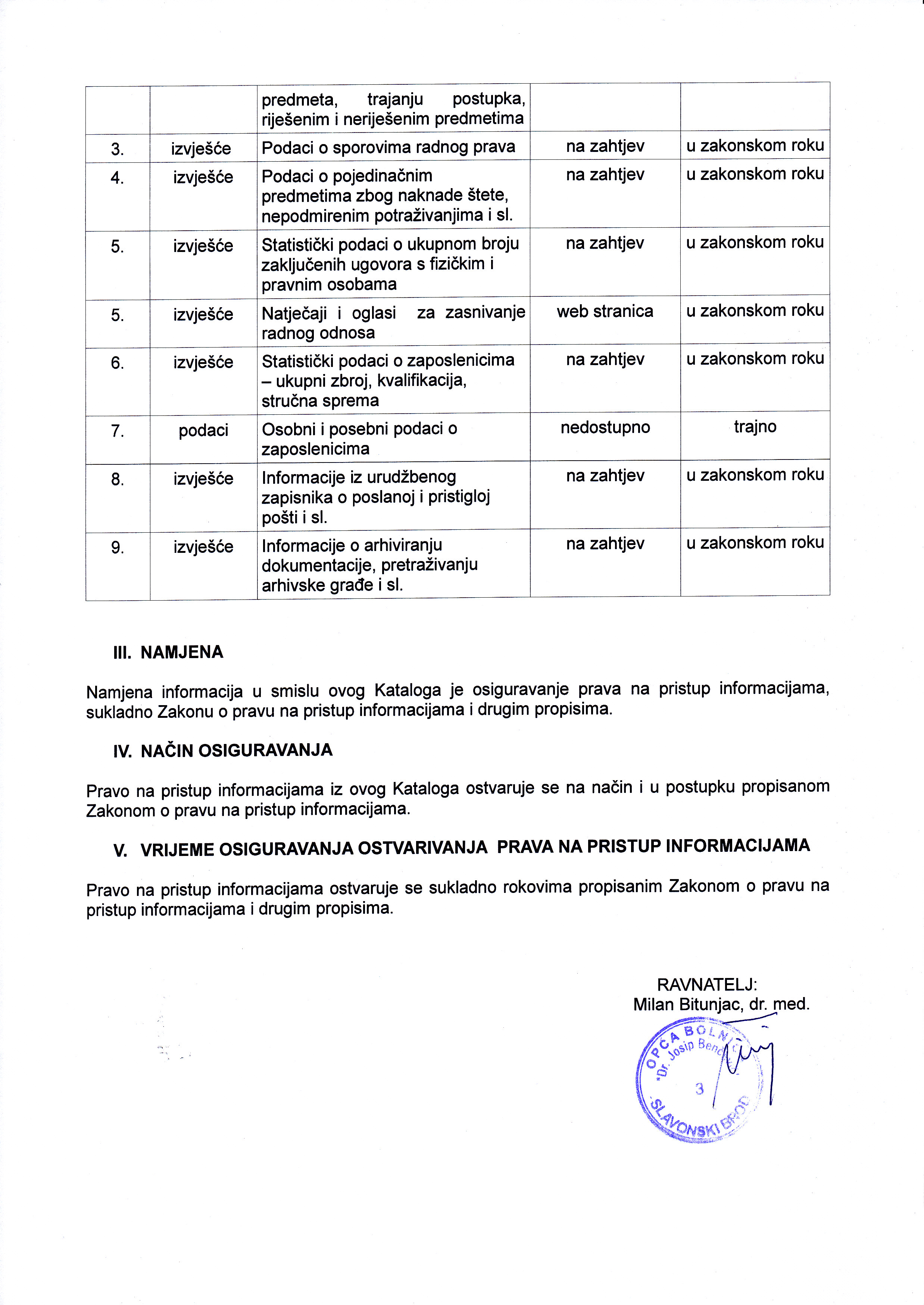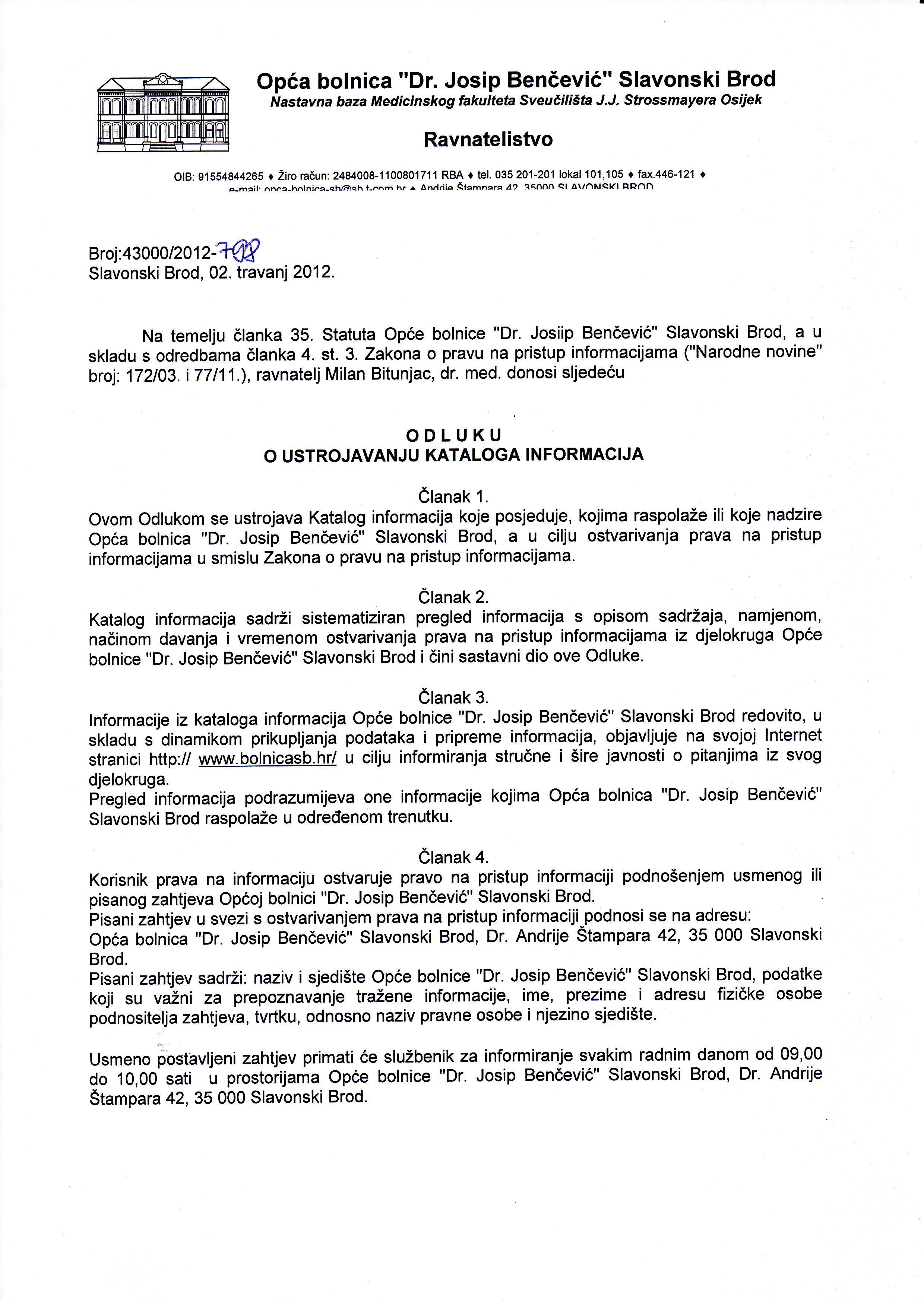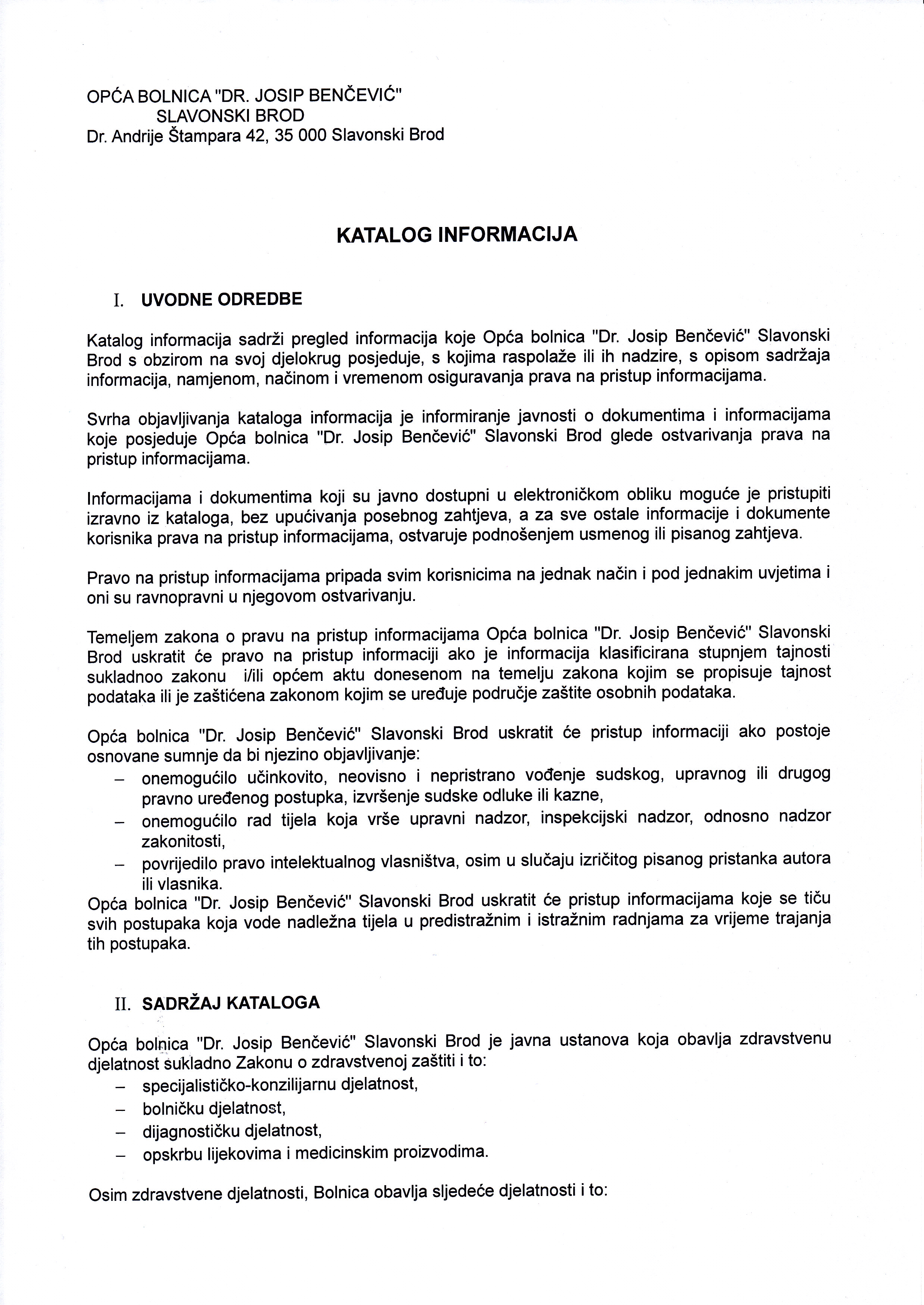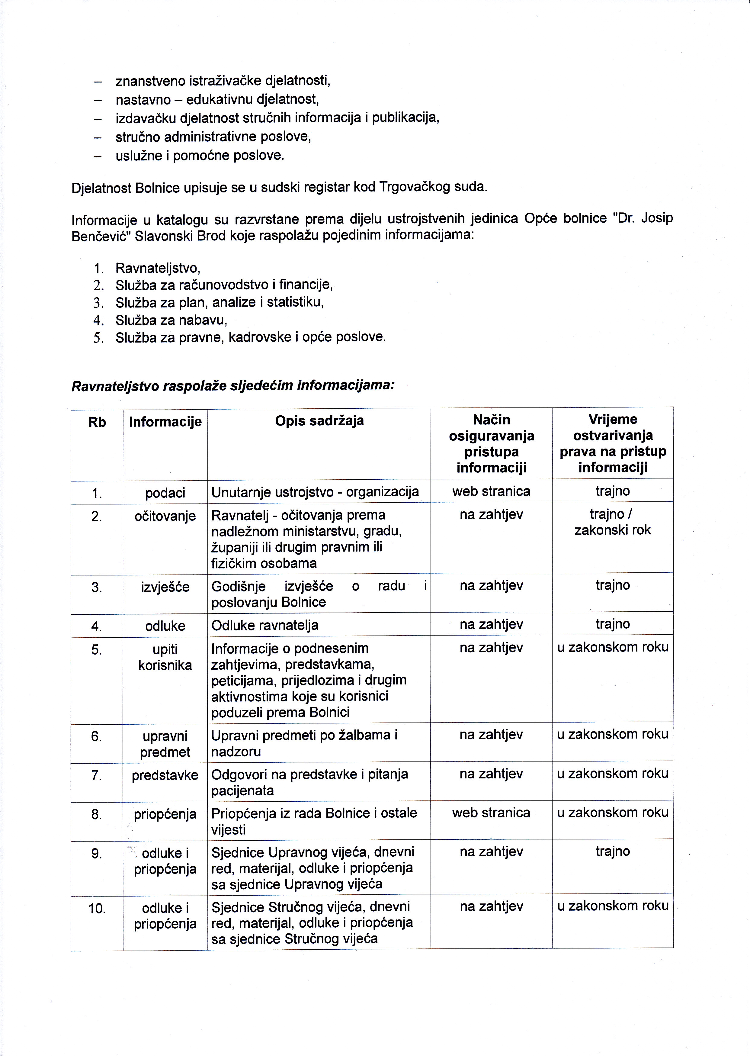 Opća bolnica "Dr. Josip Benčević" - Popis radnih mjesta