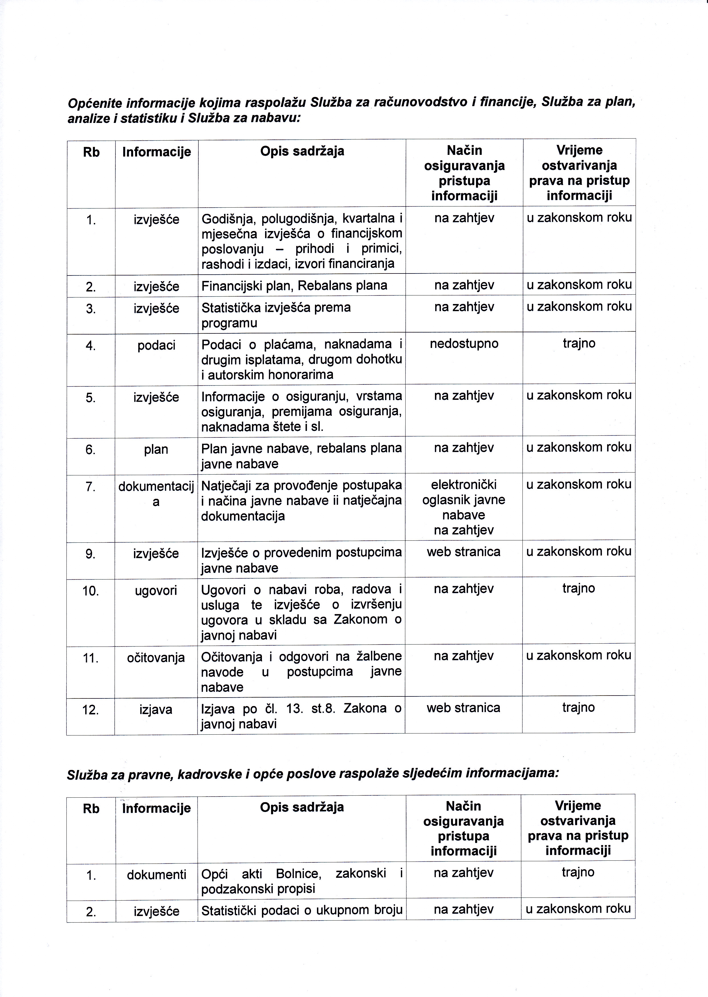 Izvješće o provedbi Zakona o pravu na pristup informacijama za 2015. godinu